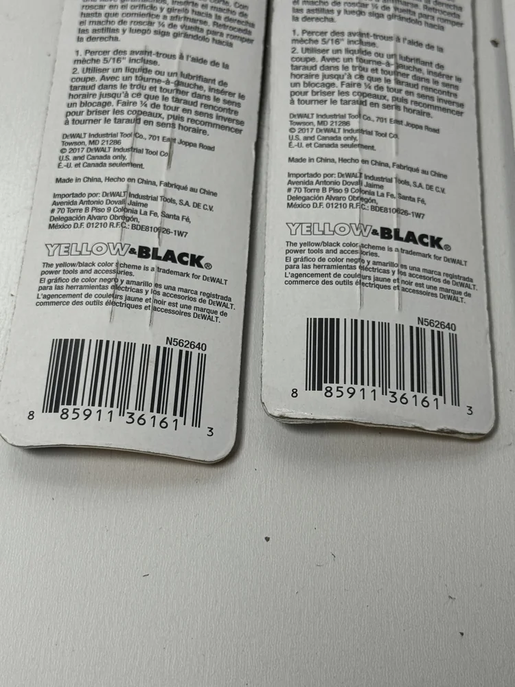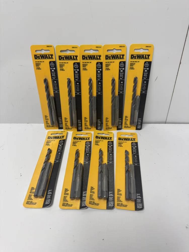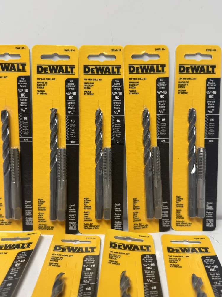 This DEWALT DWA1414 Tap and Drill Bit Set 3/8″-16 NC 9 Pack includes nine complete high-quality tap and drill bit sets. Each set contains one 3/8″-16 NC tap paired with the correct matching drill bit for precise threading.