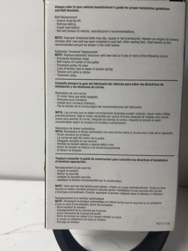 We recommend verifying fitment and compatibility with your specific vehicle before purchasing to ensure proper fit and performance. Always compare the old belt’s length, rib count, and routing diagram.
