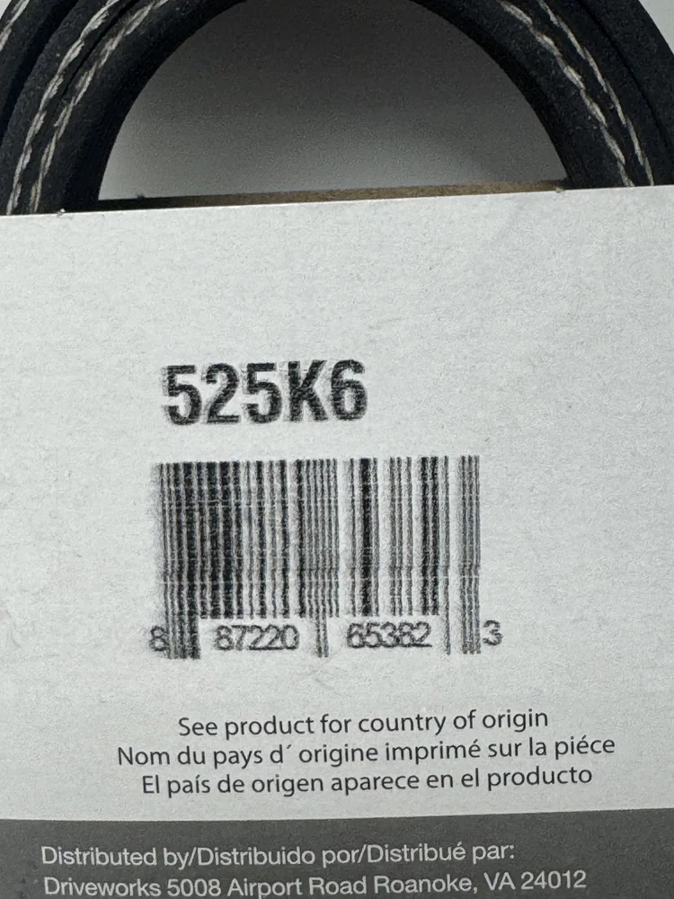The Driveworks 525K6 Serpentine Belt is a reliable replacement belt designed to deliver consistent performance and long service life in your accessory drive system.