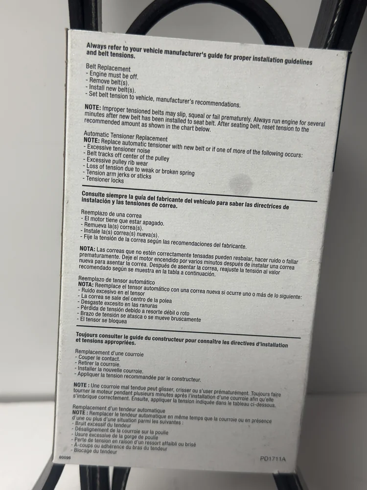 We recommend verifying fitment and compatibility with your specific vehicle before purchasing to ensure proper fit and performance. Always compare the old belt’s length, rib count, and routing diagram.