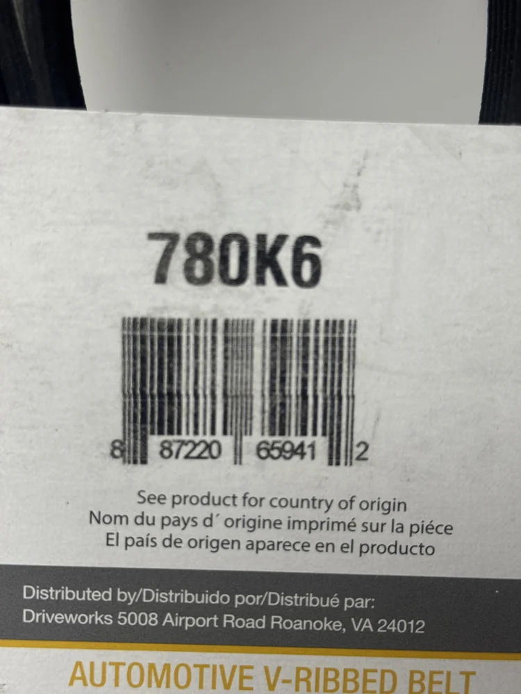Whether you are performing routine belt replacement or addressing squealing, slipping, or accessory failure, the Driveworks 780K6 Serpentine Belt is a smart choice. It helps restore full system performance and gives you confidence on every drive.