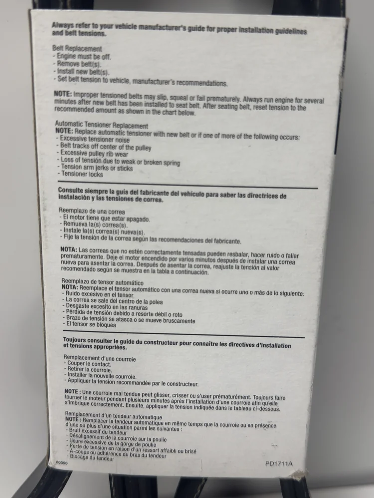 This high-quality serpentine belt helps maintain proper operation of your alternator, power steering, and air conditioning systems while resisting cracking, stretching, and premature wear.