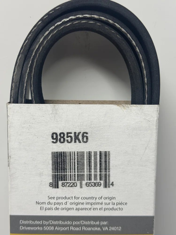 The Driveworks 985K6 Serpentine Belt is a reliable replacement belt designed to deliver consistent performance and long service life in your accessory drive system.