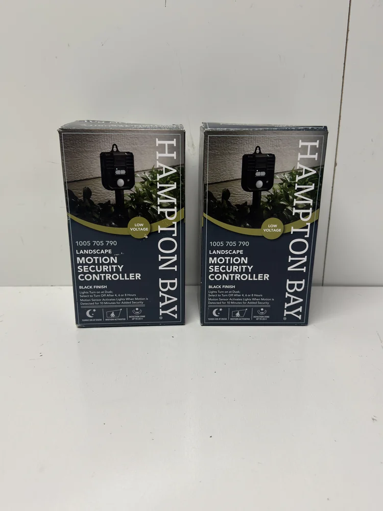 This Hampton Bay Landscape Motion Security Controller 2 Pack includes two motion-activated controllers designed for low voltage landscape lighting systems. Perfect for adding automatic security and convenience to your outdoor lighting.