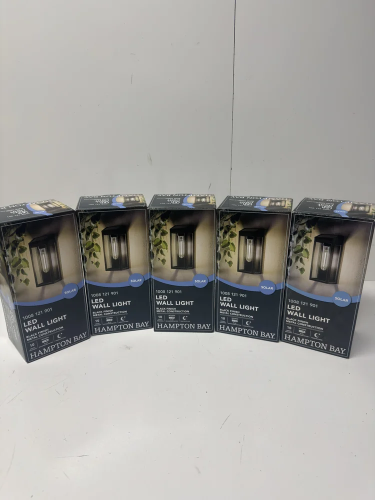 The Hampton Bay Solar Wall Lights 5 Pack brings modern, energy-efficient outdoor lighting and versatile style to your home. This sleek set of solar-powered lights delivers reliable illumination without the need for wiring or electricity.