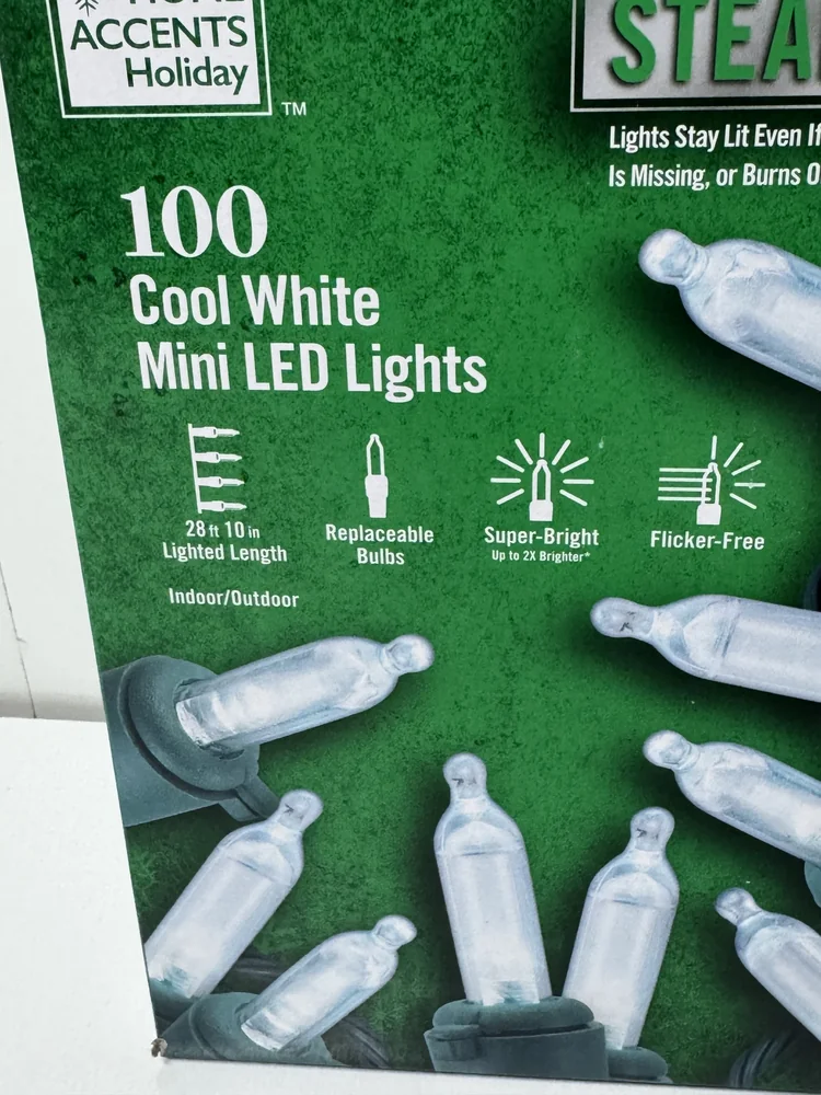 Home Accents 100 Cool White Mini LED Lights – Steady Lit