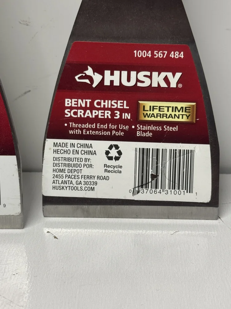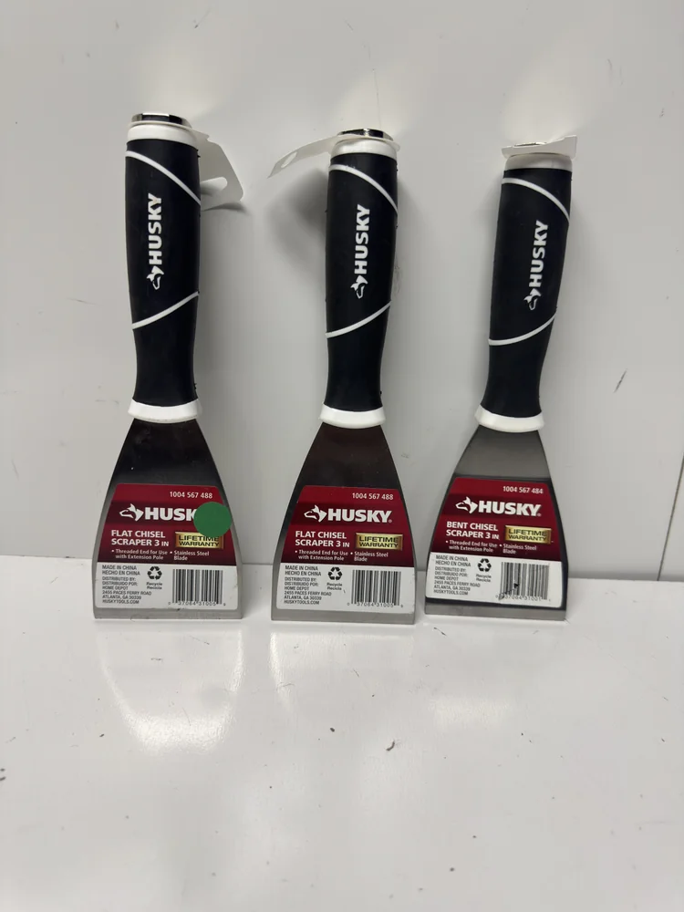 This Husky Chisel Scrapers Bulk Lot 3pc is a genuine mixed assortment of brand new professional grade chisel scrapers. Perfect for contractors, remodelers, painters, or anyone needing a ready to use set for paint removal, flooring, gaskets, rust, or general scraping tasks.