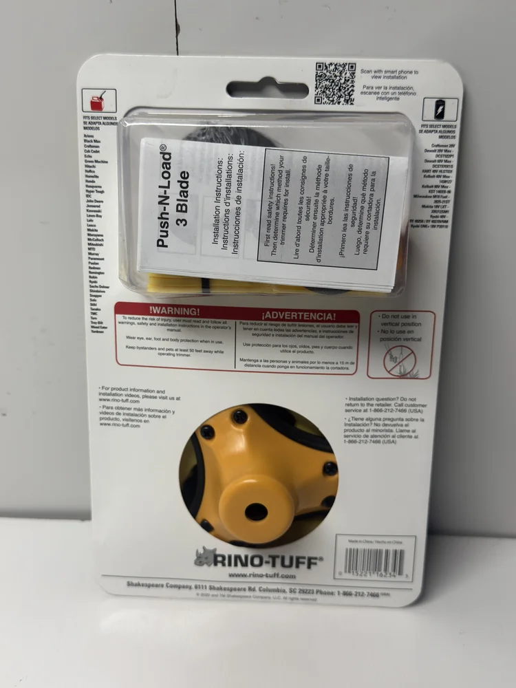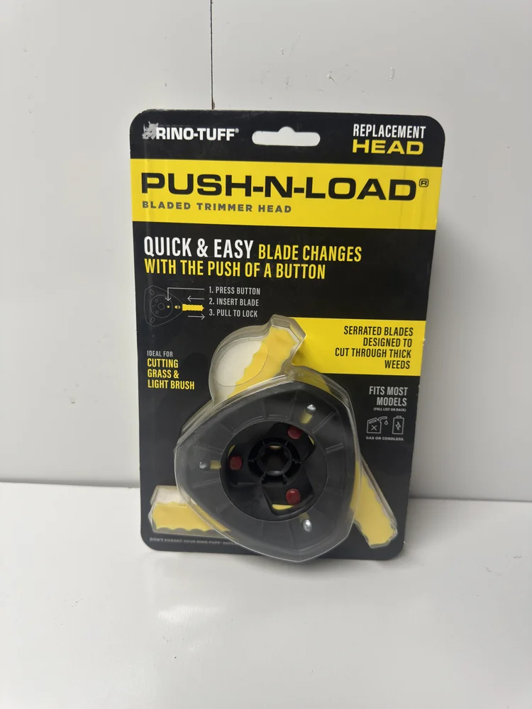 Whether you are maintaining a large yard, tackling overgrown areas, or doing professional landscaping, this Rino Tuff Universal Fit Push-N-Load 3 Blade Replacement Head delivers reliable performance with less downtime.