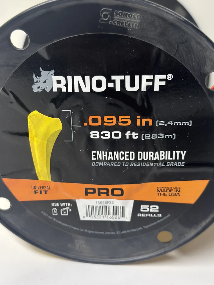 This Rino Tuff Heavy Duty Trimmer Line .095in 830ft is a professional grade replacement spool designed for tough trimming and edging jobs. Perfect for homeowners, landscapers, and contractors who need reliable performance from their gas or select cordless string trimmers and lawn edgers.