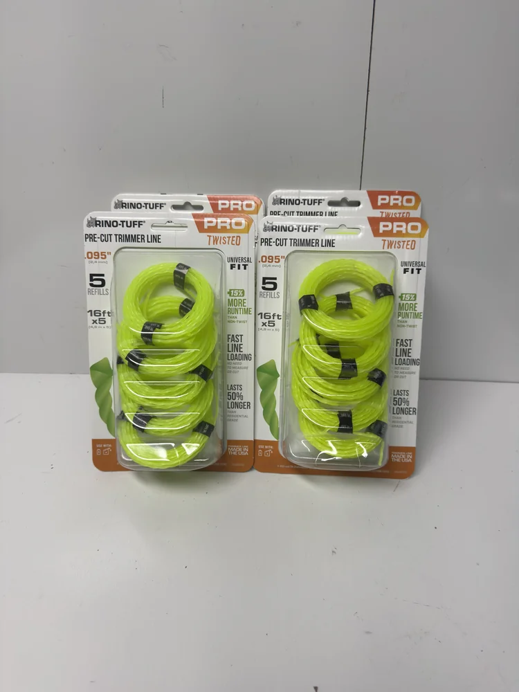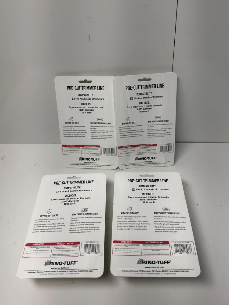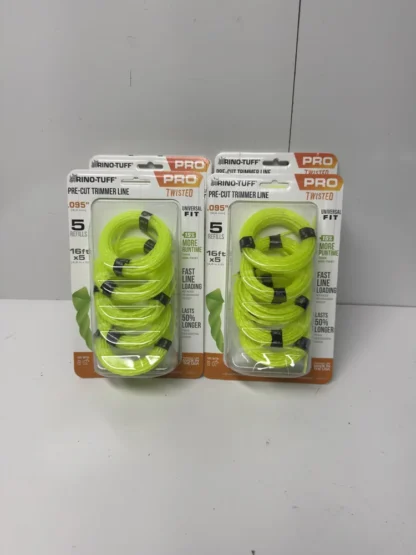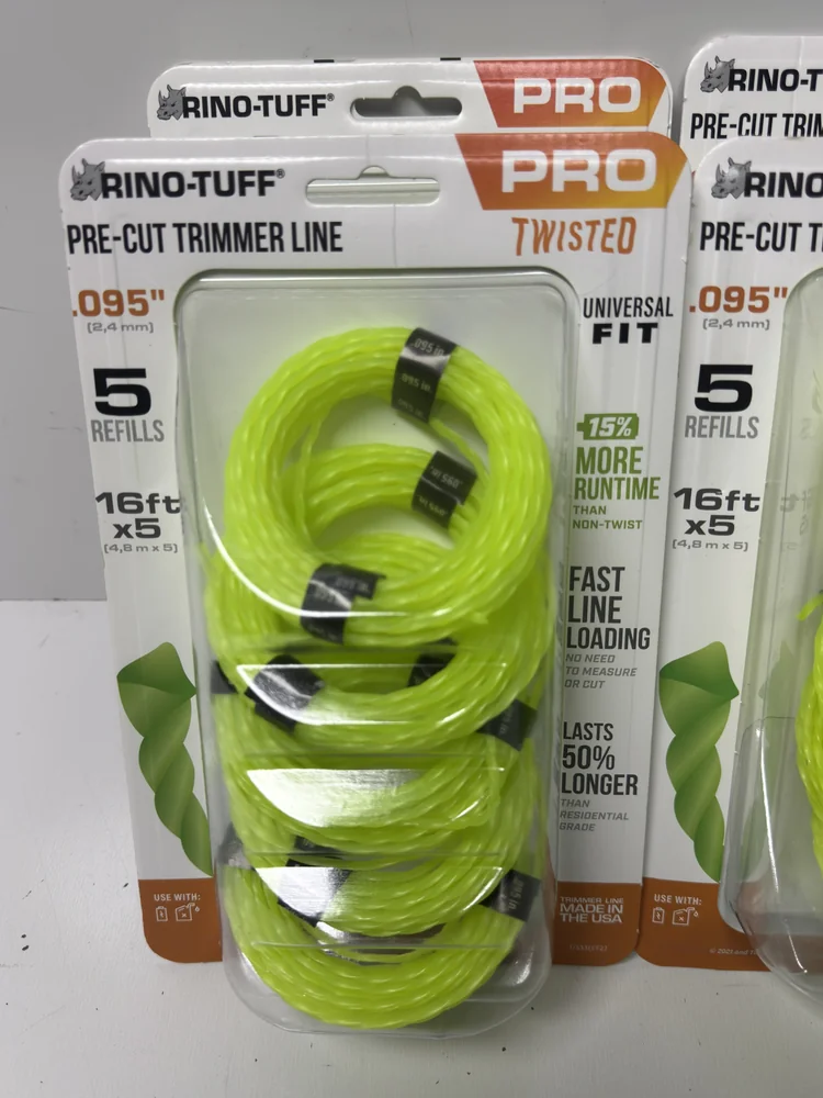 This Rino Tuff Pre Cut Trimmer Line .095 4 Pack gives you four ready-to-use lengths of heavy duty trimmer line. Perfect for homeowners, landscapers, and contractors who want less downtime and strong cutting performance on tough grass, weeds, and light brush.