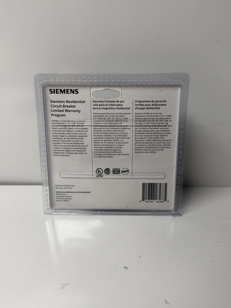 The Siemens 70A 2-Pole Type QP Circuit Breaker brings reliable protection and trusted performance to your electrical panel. This essential component is designed to safeguard your home or business from overloads and short circuits while maintaining smooth power distribution.